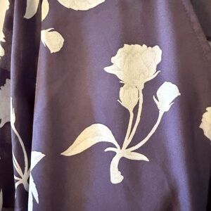 Chic floral blouse with a V-neck. Lavender and white pattern. Ideal for versatile styling.