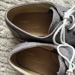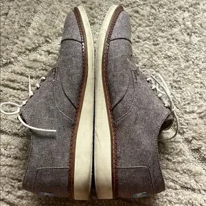 Experience the perfect blend of casual and smart-casual with Toms Gray and White Oxfords. These shoes feature a heathered gray fabric with a clean, minimalist design and a comfortable, flexible construction. The white contrast lacing and light-colored sole add a touch of elegance to any outfit. Price reflects condition - gently used with more wear! Note that they could use a new pair of laces (worn as pictured)