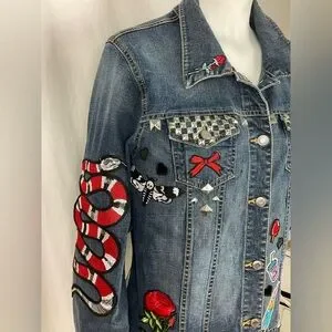 Embellished Patchwork Beaded Denim Jean Jacket Upcycled Jean Jacket Size XXL