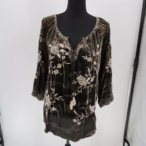 JOHNNY WAS Millie Velvet Peasant Blouse - Size Medium