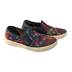 Sofft Shoe Slip On Somers Floral Embroidered Denim Boho Sz 8.5 M Leather Lining