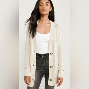ABERCROMBIE AND FITCH AF BOYFRIEND CARDIGAN CREAM SWEATER GRANNY GRANDMACORE S