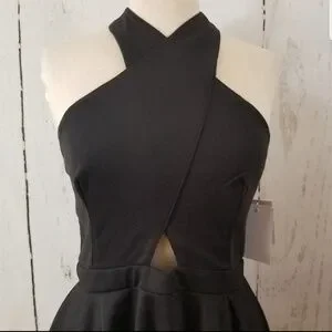 New with tags designer dress in color black. Perfect for homecoming or any special occasion. Ties in the back and has a layered skirt.