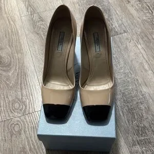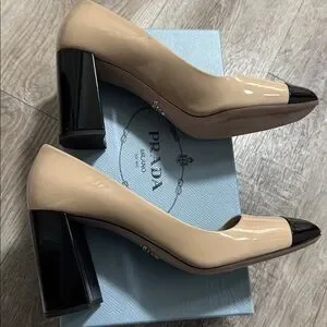 Vintage two tone patent leather 1997 Prada heels comes with box and dust bag. I bought these in the late 90's after seeing Carolyn Bessette Kennedy buy them at Barney’s