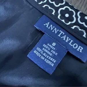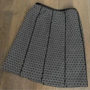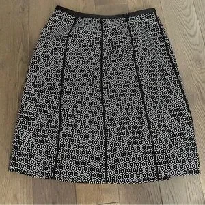 Ann Taylor Black and White Flower Print 100% Silk Skirt Size 8