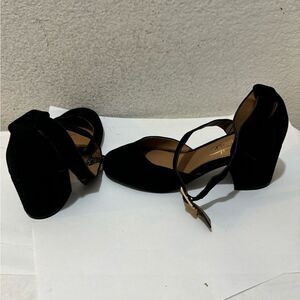 NANETTE LEPORE Demi Black Suede Two-Piece Crisscross Pumps Shoes