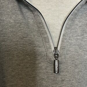 Stylish Gray Quarter-Zip Sweater with White Stitching