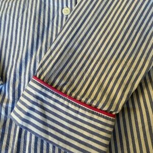 Gorgeous women’s pajama set with blue stripes and pink details. Soft and comfortable for bedtime. 100% cotton. Size XS. In excellent, like new condition.