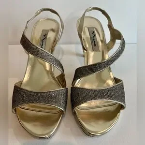 Nina Women’s Leather Slingback Gold Silver Heels Size 9.5