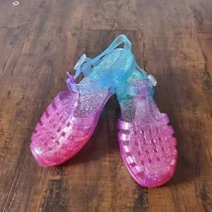Children's Place Girls Jelly Sparkly Ombre Pink, Purple And Blue Sandals Size 4