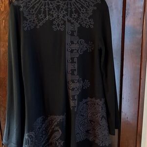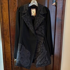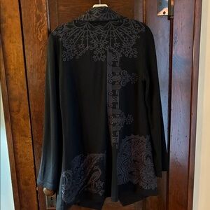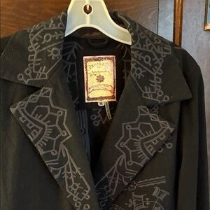 Stylish black blazer with elegant patterns, perfect for a sophisticated look.