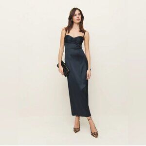 Reformation Stormi Satin Dress- Navy Blue