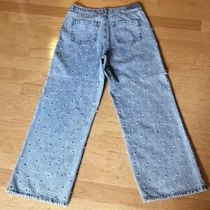 Stylish high rise jeans with sparkling details. Adds glamour to any outfit.