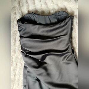 This elegant Smokey Gray strapless dress is perfect for any formal occasion. Its sleek design and classic color make it a versatile addition to your wardrobe.