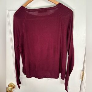Fully fashioned raglan sleeve. Burgundy wine maroon.