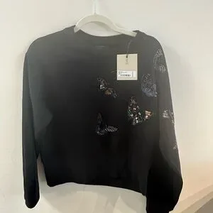 Stylish black sweatshirt with butterfly embellishments. Perfect for casual wear.