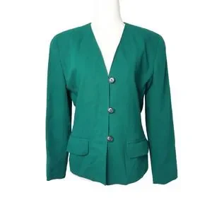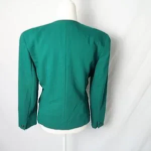 Vintage 80s Anne Klein dark green wool blazer jacket 6P