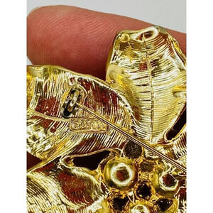 Vintage Cadoro Flower with Pearls Gold Tone Brooch Pin 2.5" Estate Signed