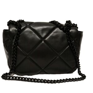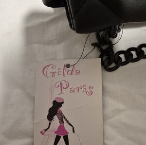 The Gilda Paris Small Quilted Bag in Black is a stylish and versatile accessory for women. This rectangular bag features a turn lock closure and a shoulder strap handle in black metal. The black quilted exterior is made of faux leather, with a inner pocket for organization. The bag also comes with a lock accessory and is designed with a Paris theme, making it a chic addition to any outfit. Perfect for carrying essentials in a small and compact size, this Gilda Paris bag is both practical and fashionable.