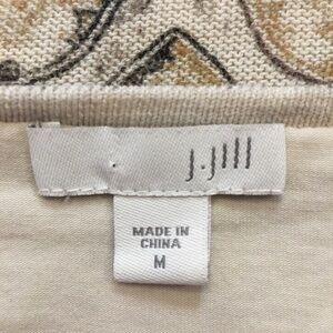 Beautiful cream brown paisley print knit. Fully lined with sheer ruffle under hemline. Gently preowned condition. See photo for material details