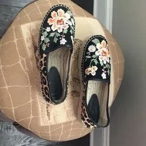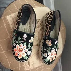 Johnny Was-Elegant espadrilles with leather leopard and vibrant floral embroidery. Perfect for casual outings. Gently worn, like new. (EUC)