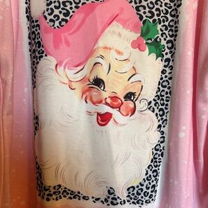Embrace the holiday spirit with this delightful pink long sleeve top featuring a cheerful Santa design. Perfect for festive occasions.size XXL