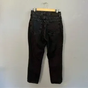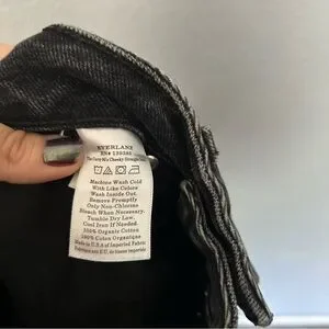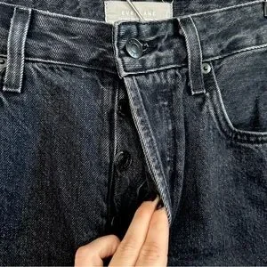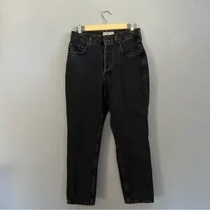 High waisted fit in a washed black denim. Button fly, ankle length. 100% organic cotton, in good condition they just don’t fit me anymore