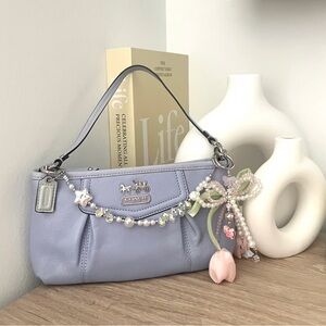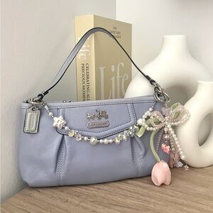 Elegant Coach shoulder bag in a beautiful lavender shade. Perfect for adding a touch of sophistication to any outfit.