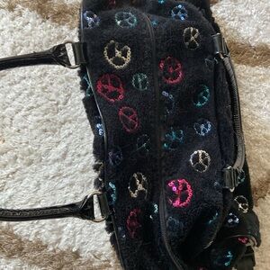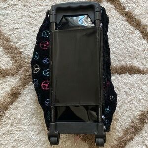 Justice Girl’s Black Plush Sequin Peace Sign Rolling Overnight Bag Sleepover