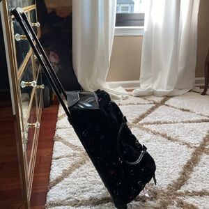 It’s in very good condition. Can be carried or rolled. There is some wear on the back and one scuff mark but these aren’t really noticeable. But super cute and nice and clean on the inside. Smoke free clean home. All reasonable offers are accepted.