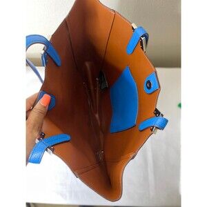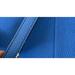 This Ralph Lauren tote bag is crafted from soft blue pebbled leather, offering both style and function. Designed for casual wear, it features a spacious interior with inner pockets, making it perfect for everyday essentials. The sleek, solid blue design and matching handles give it a sophisticated, polished look. This medium-sized tote is ideal for those seeking both fashion and practicality.