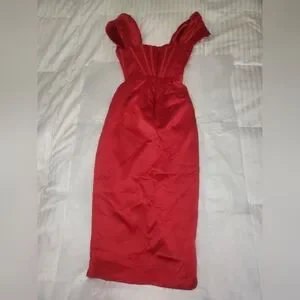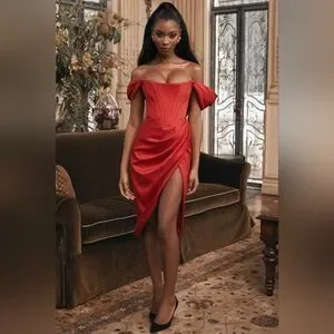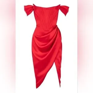 Gentle Dry Clean Only"- Retrieved from "Loretta".(n.d.). House of CB. https://app.houseofcb.com/loretta-red-satin-off-shoulder-dress