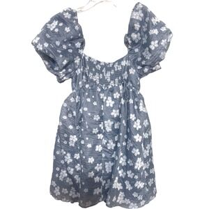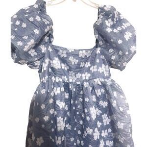 Storia Romantic Floral Babydoll Mini Dress Blue Puff Sleeve Cottage Medium