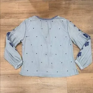 J.Crew Embroidered Blue Women's Boho Top, Size 2
