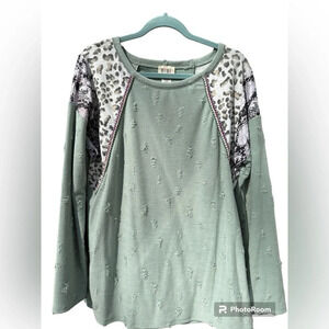 Sage Leopard Snake Print Distressed WomansTop Size Medium
