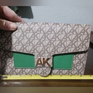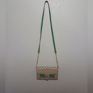 Anne Klein crossbody wallet purse. classic print with Emerald and gold accent. only worn a couple of times great condition.