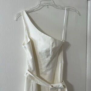 Details: One-shoulder belted midi dress with side zip closure, partial lining, and a flattering side slit. Shoulder-to-hem ≈ 45" (see photos). Clean white fabric with structured seams for a tailored silhouette — ideal for showers, rehearsal dinners, or any dressy occasion. Smoke-free, pet-free home. Measurements available in photos — happy to take additional measurements on request. Offers & bundles welcome!