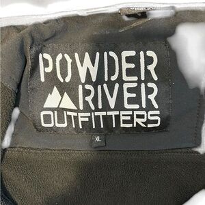 Stylish black jacket by Powder River Outfitters. Features a sleek design with a front zipper.