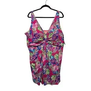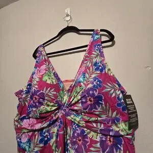 Dive into summer with this vibrant floral one-piece swimsuit. Featuring a stunning mix of pink, purple, and green hues, this swimsuit is perfect for a day at the beach or pool.