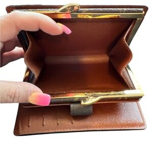 Elegant Louis Vuitton wallet with iconic monogram design. Features a classic brown color with gold accents.
