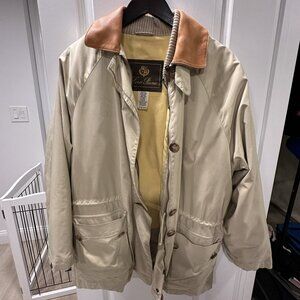 Outer material: Storm System® technical fabric – windproof and water-resistant, beige color