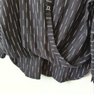 Habitat Women's Crossover Top Long Sleeve Wrap Medium Lagenlook Black Artsy EUC