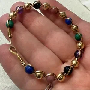 -beautiful gold filled wire and beaded bracelet with genuine stone like rhodonite, onyx, malachite, amethyst and lapis