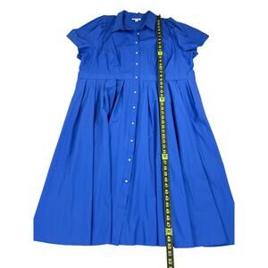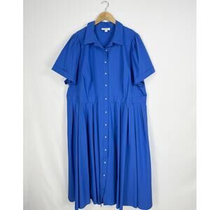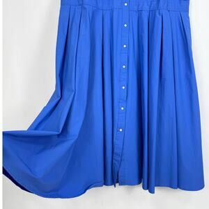 This elegant blue button-up midi dress is perfect for any occasion. Its classic design and vibrant color make it a must-have in your wardrobe.