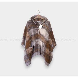 Brunello Cucinelli Cashmere Knit Hooded Poncho Top Sweater Fleecy Teddy Size S