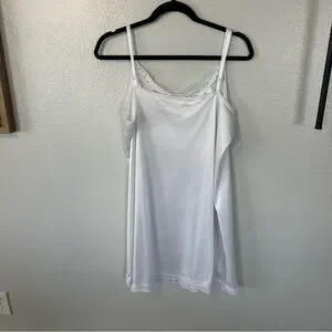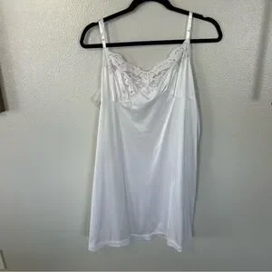 Vintage Vassarette Nylon Lace Slip Dress in White Made in USA Paper Tag, XL