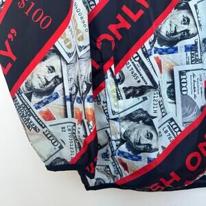 Stay stylish with this bold Reason Brand windbreaker featuring an all-over cash print and red “CASH ONLY” lettering. Designed in New York City, this lightweight jacket is perfect for streetwear lovers.