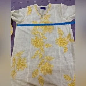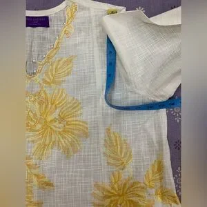 SANA SAFINAZ White and Yellow Embroidered Dress