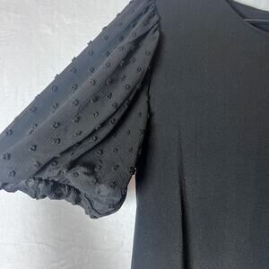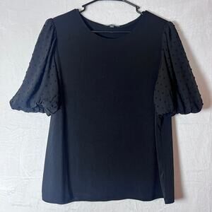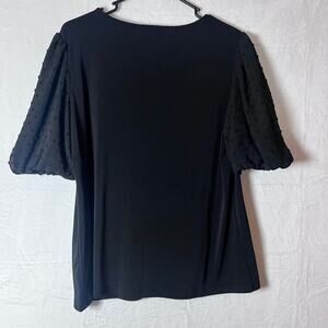 Adrianna Papell Size Large Black Puff Sleeve Swiss Dot Top Blouse Elegant Dressy