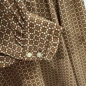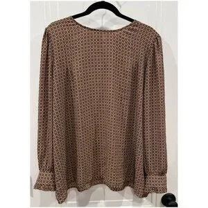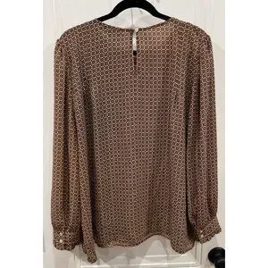 Loft Long-Sleeve Top Brown with Cream & Pink Design EUC